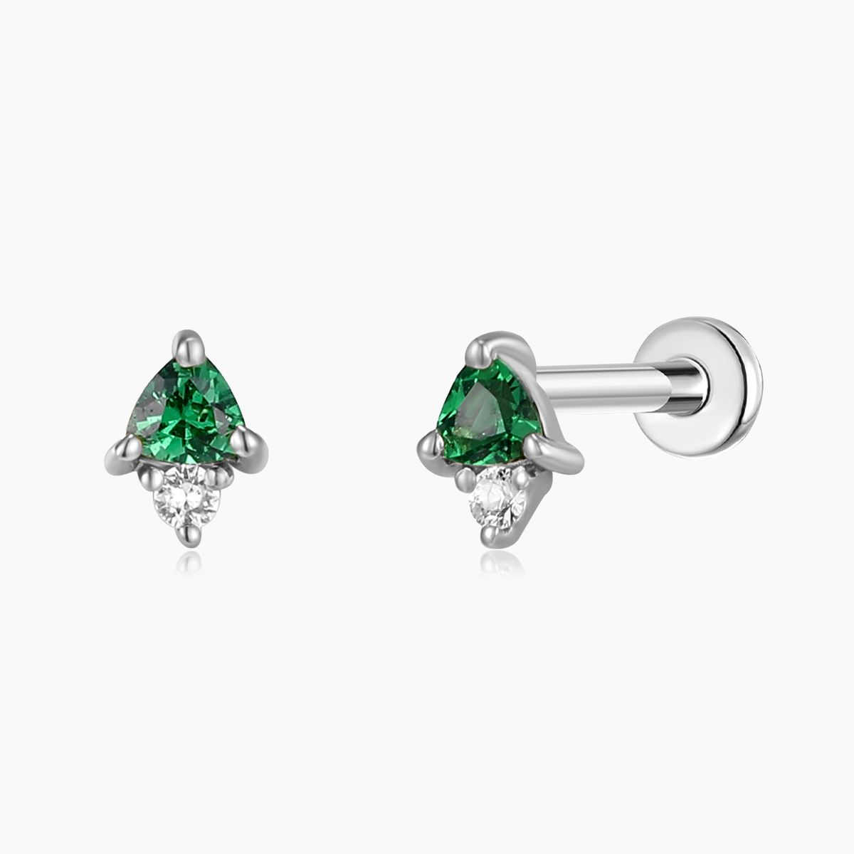Ein klarer, kühler Look mit einem grünen Mittelstein. Die Weißgoldfassung unterstreicht die Farbbrillanz, während der flache Titanstecker für einen optimalen Sitz an verschiedenen Ohrpositionen sorgt.